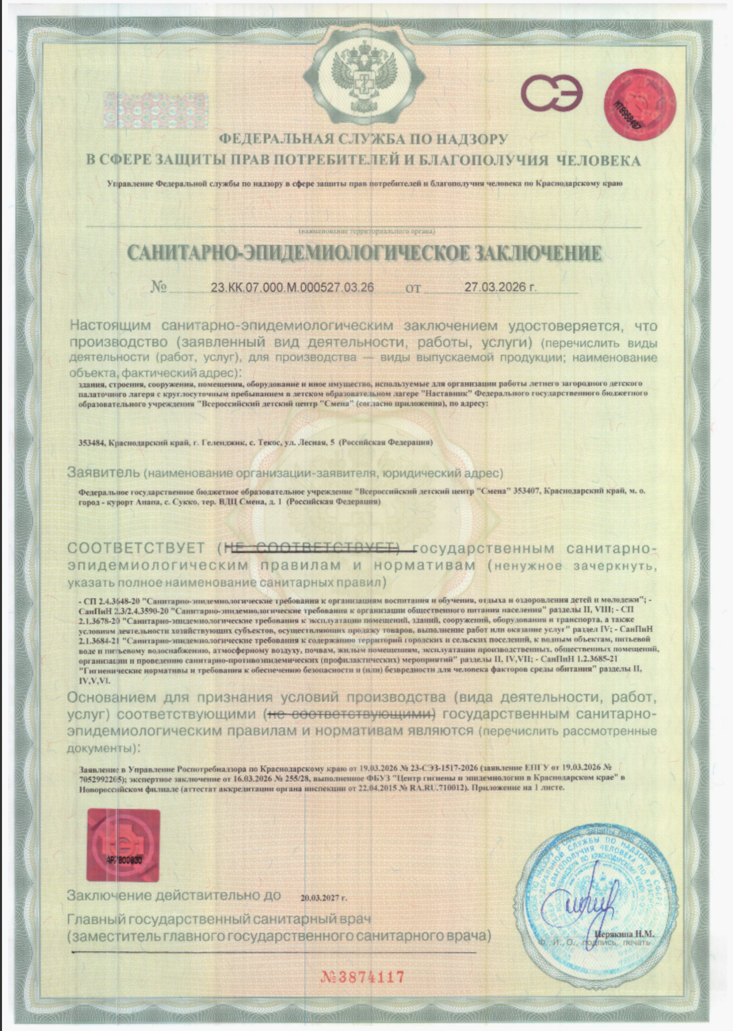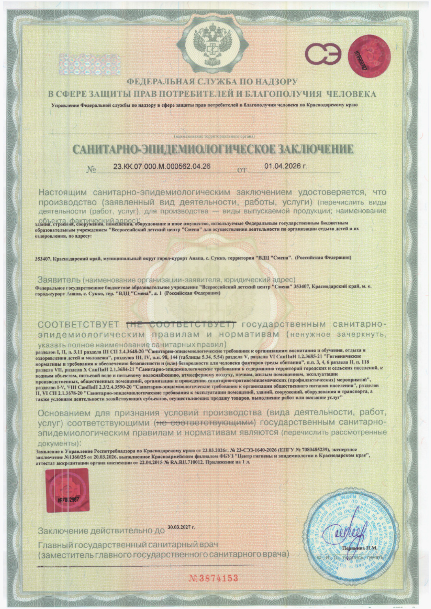 Санитарно-эпидемиологические заключения